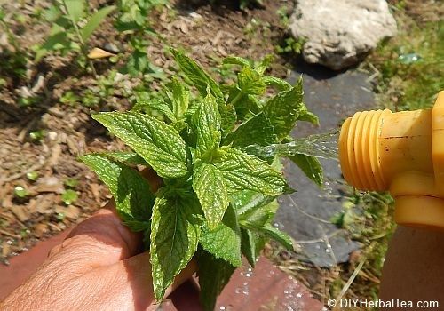As soon as you've harvested your mint, rinse it off to remove any dust, dirt, and tag-along critters.