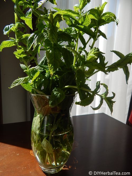 Tip: If your sprigs start looking droopy, pop them - container, water and all - into the fridge (not the freezer!). In 15 minutes or so, your mint will perk right up.